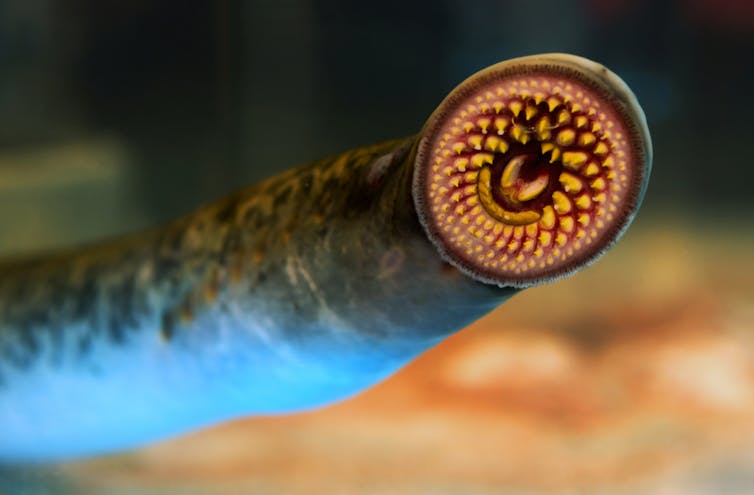 A sea lamprey has no jaw, no proper teeth and no bones. Yet this predator can attach like a suction cup to a fish 100 times its size, use its tongue to burrow a hole into its side, liquefy its tissues and eat it.